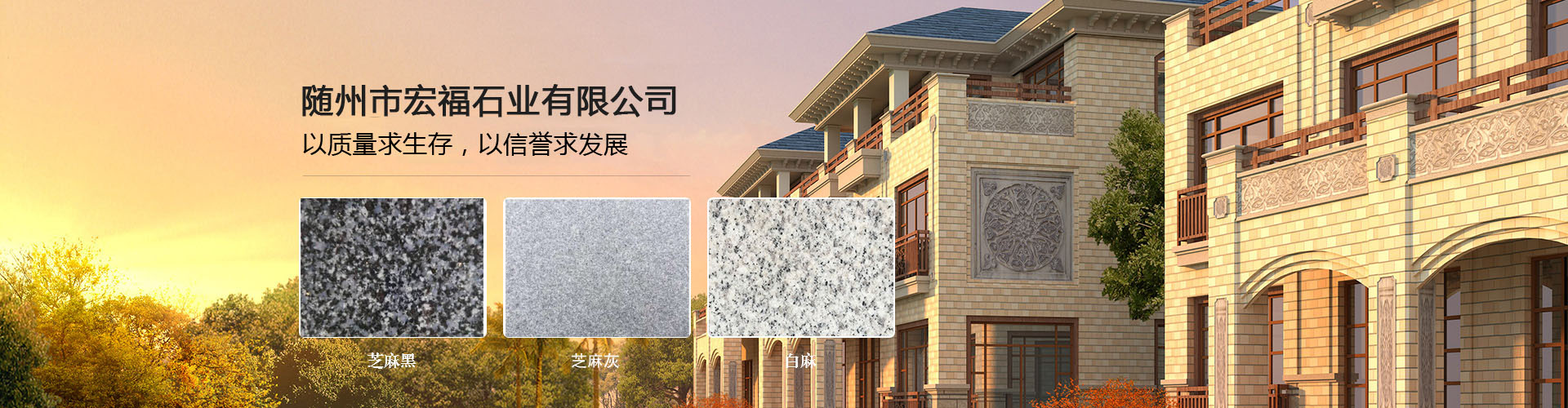 隨州市宏福石業(yè)有限公司地處湖北省隨州市,漢十高速公路直通武漢,交通十分便利,是一家集石材加工、銷售,國際貿(mào)易為一體的大型石材企業(yè),本公司專業(yè)生產(chǎn)湖北黃金麻,白麻,芝麻灰,芝麻黑,卡基諾金,黃金鉆,咖啡鉆,黃金鉆花崗巖石材,花形均有大花,中花,小花品種;可加工生產(chǎn)磨光面,荔枝面,火燒面,噴沙面,自然面等。隨州花崗巖石材具有“質(zhì)地硬,花點小,雜質(zhì)少,顏色深,光度好,色差小”等優(yōu)點,廣泛用于外墻干掛,路政廣場公園地鋪,家居裝修,墓園碑料。